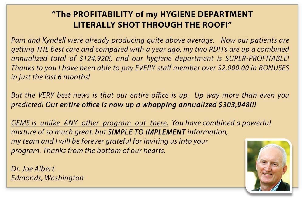 PPS If you have just one hygienist and even if you were to retire in just five years... this one “Gem” could add an EXTRA $200,000 to $250,000 to your retirement!